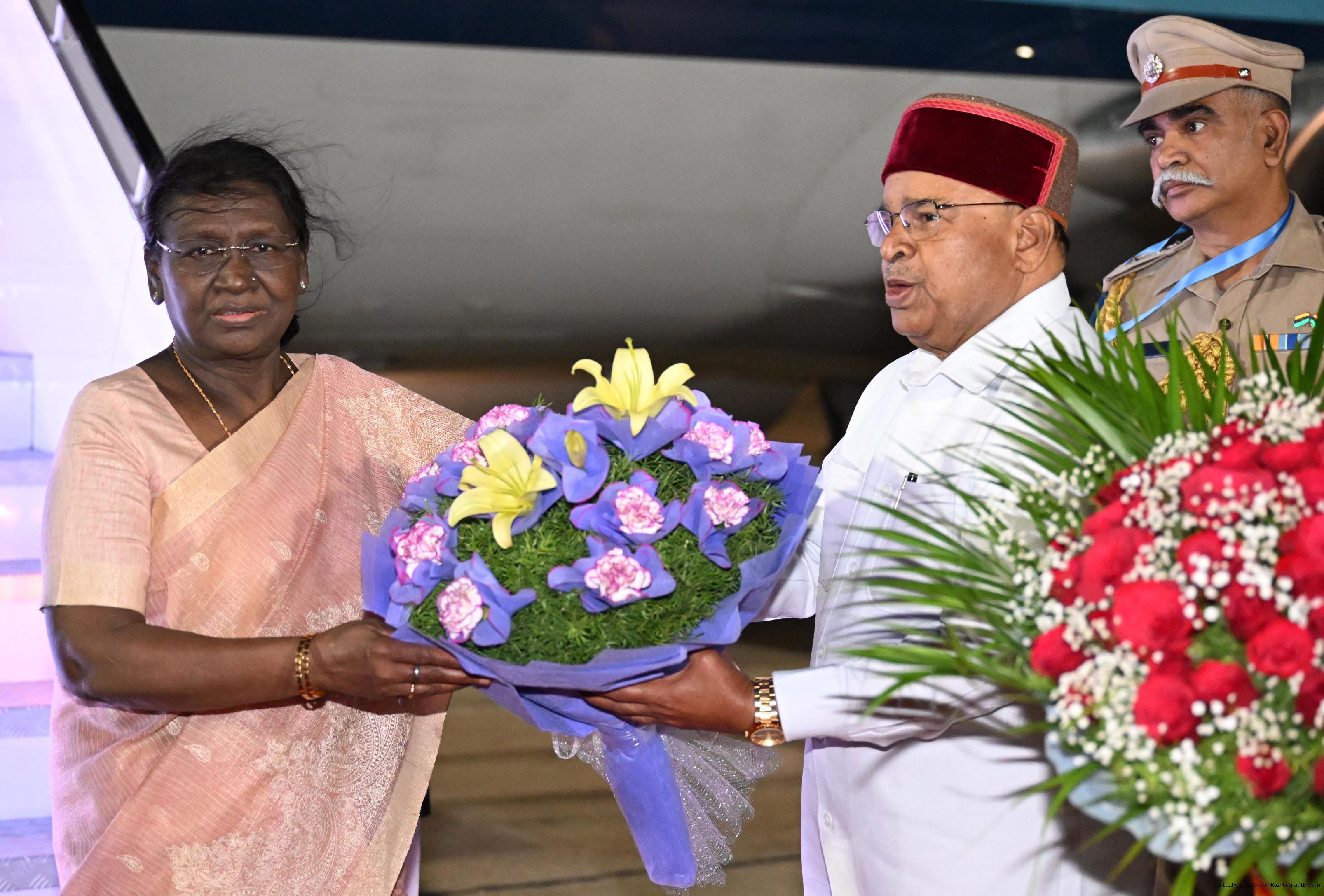 The Governor of Bihar, Lt Gen Syed Ata Hasnain (Retd.) received the President of India, Smt Droupadi Murmu on her arrival at Gaya, Bihar on March 31, 2026.