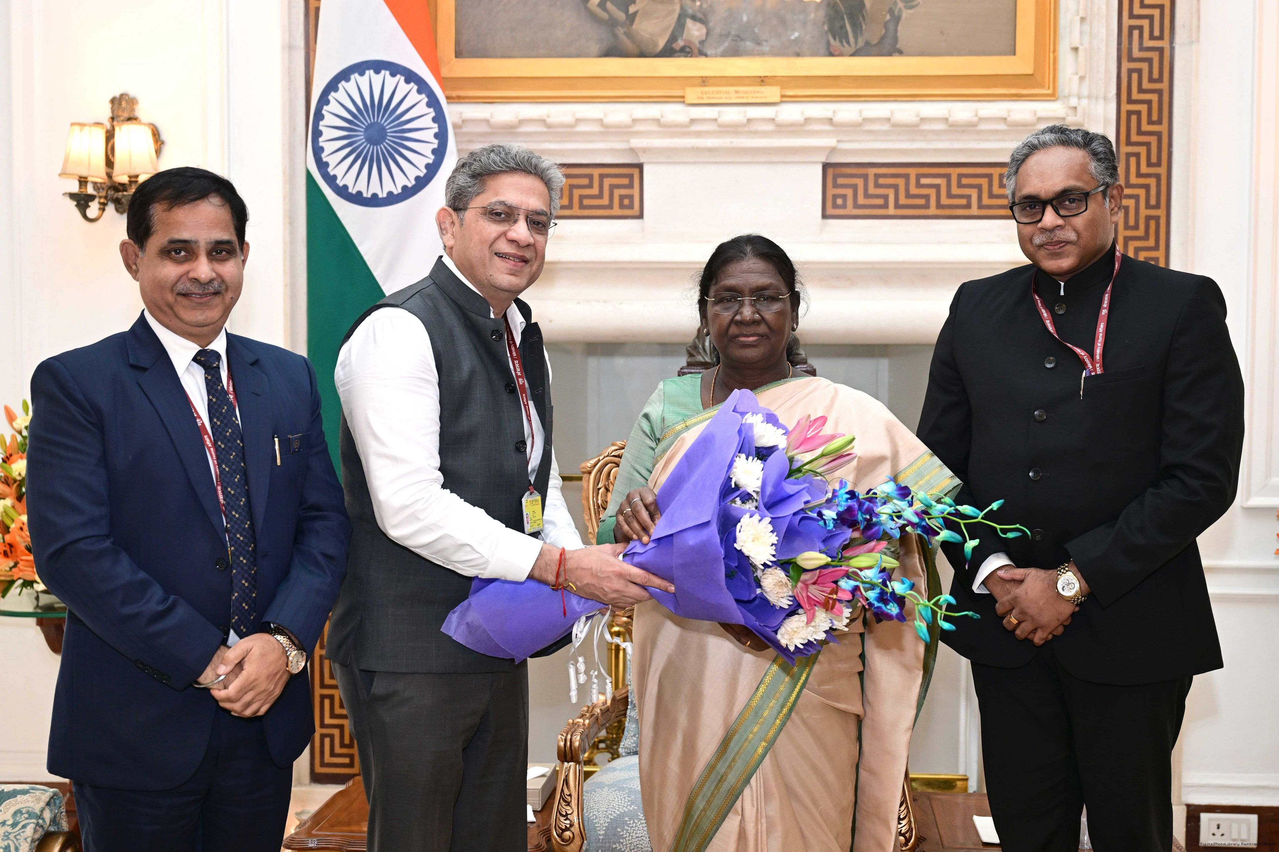 Shri Vijay Kumar, Secretary, Ministry of Ports, Shipping and Waterways along with others meeting with the President of India, Smt Droupadi Murmu at Rashtrapati Bhavan on March 30, 2026.