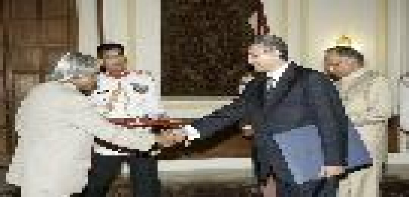 The Ambassador-Designate of Arab Republic of Egypt to India, HE Dr Mohamed Abd EI Hamid Higazy presenting his credential to the President of India, Dr A P J Abdul Kalam at the Yellow Drawing Room of Rashtrapati Bhavan in New Delhi on Sep 12, 2006