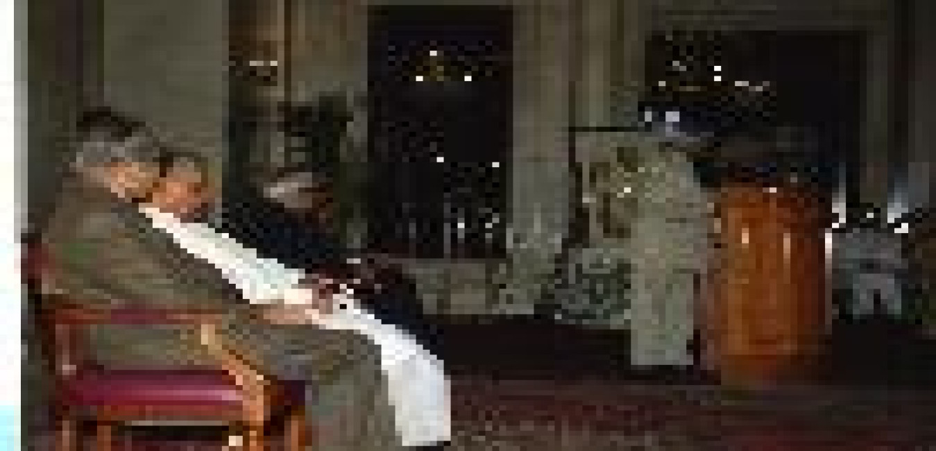 The President of India, Dr A P J Abdul Kalam receiving Idu' l Fitr Greetings from the Prime Minister of India, Shri Atal Bihari Vajpayee at Rashtrapati Bhavan in New Delhi on Dec 06, 2002
