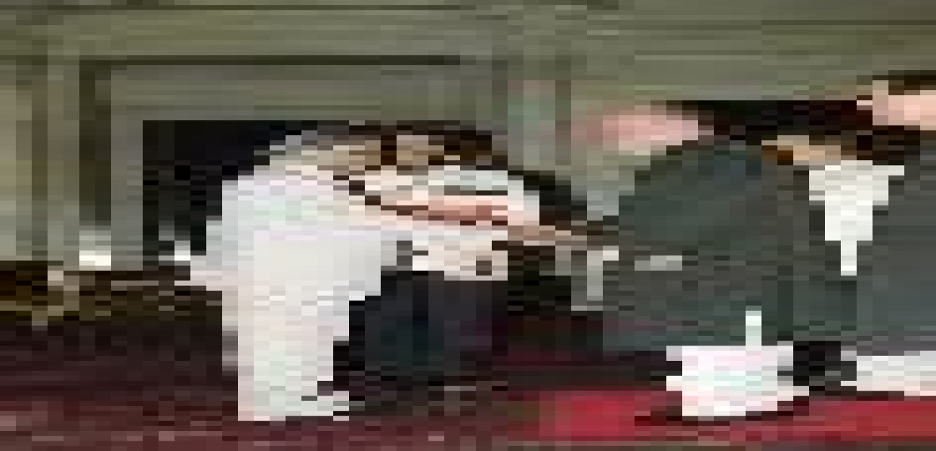 The High Commissioner-Designate of Islamic Republic of Pakistan to India, HE Mr Aziz Ahmad Khan presenting his credentials to the President of India, Dr A P J Abdul Kalam at the Ashok Hall of Rashtrapati Bhavan in New Delhi on July 10, 2003