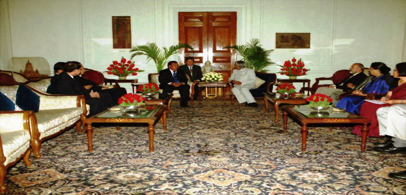 The Prime Minister of the Lao People s Democratic Republic, His Excellency Mr Bounnhang Vorachit calling on the President of India, Dr A P J Abdul Kalam at the Morning Room of Rashtrapati Bhavan in New Delhi on June 16, 2003