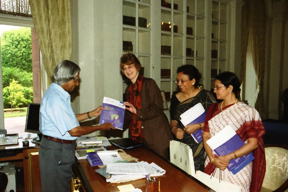 The President of India, Dr A P J Abdul Kalam presenting the Human Development Report by Dr Brenda Gael Mc Sweeney at Rashtrapati Bhavan in New Delhi on July 07, 2003