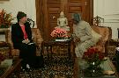 The Prime Minister of New Zealand, Rt Hon Helen Clark and Prof Peter Davis calling on the President of India, Dr A P J Abdul Kalam at the Morning Room of Rashtrapati Bhavan in New Delhi on Oct 20, 2004