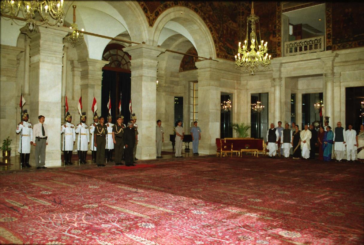 The President of India, Dr A P J Abdul Kalam at the Dinner Hosted for the Council of Ministers at the Banquet Hall of Rashtrapati Bhavan in New Delhi on Aug 10, 2002