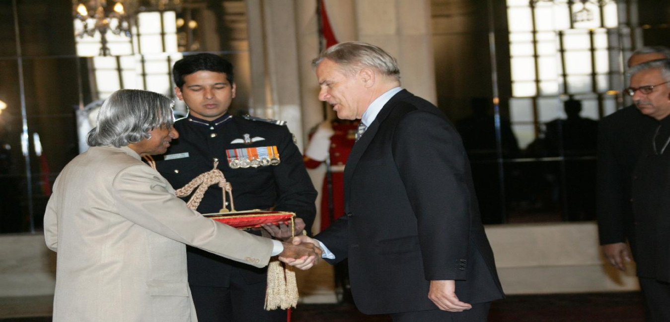 The High Commissioner-Designate of Australia, HE Mr John McCarthy presenting his credentials to the President of India, Dr A P J Abdul Kalam at the Ashok Hall of Rashtrapati Bhavan in New Delhi on Jan 18, 2005