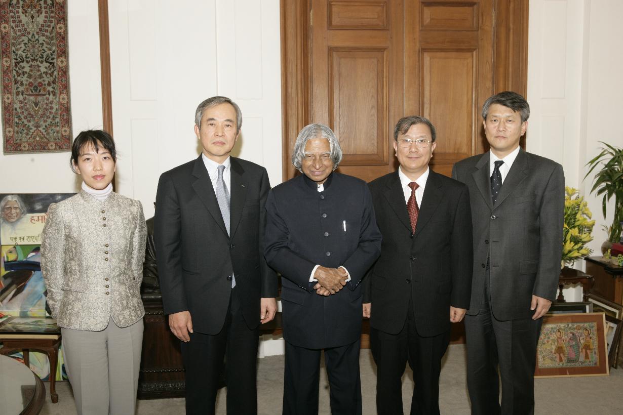 The President of India, Dr A P J Abdul Kalam with the Chairman of POSCO from South Korea, HE Mr Ku-Taek Lee and others at Rashtrapati Bhavan in New Delhi on Dec 14, 2006