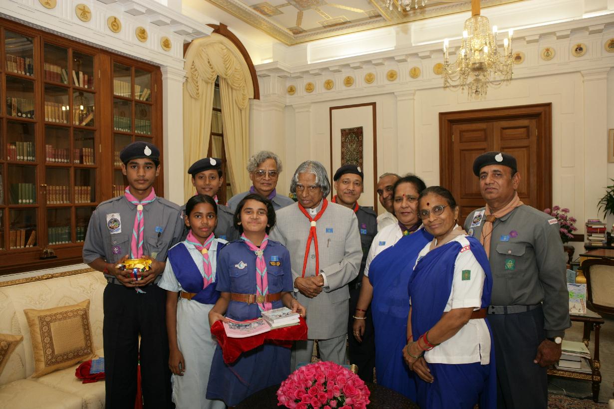 The President of India, Dr A P J Abdul Kalam with Shri L M Jain, National Commissioner and others from the Bharat Scouts & Guides to pining a Flag on the occasion of their Flag Day at Rashtrapati Bhavan in New Delhi on Nov 07, 2005