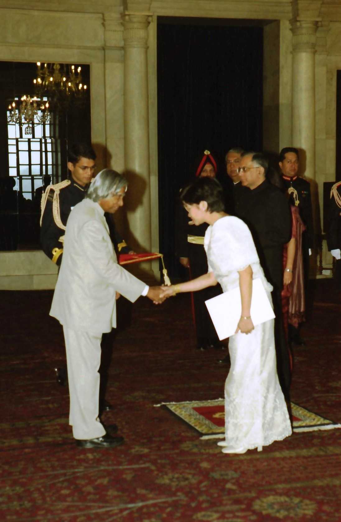 The Ambassador-Designate of Philippines to India, HE Laura Q del R presenting his credential to the President of India, Dr A P J Abdul Kalam at the Ashok Hall of at Rashtrapati Bhavan in New Delhi on Nov 24, 2003