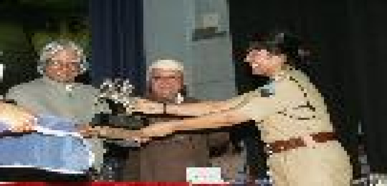 The President of India, Dr A P J Abdul Kalam being welcomed at Srinagar Helipad in Uttaranchal on Oct 16, 2005
