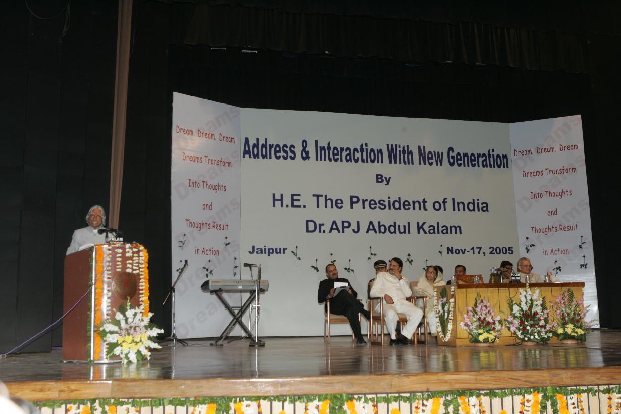 The President of India, Dr A P J Abdul Kalam interacting with the School Children at Jaipur in Rajasthan on Nov 17, 2005