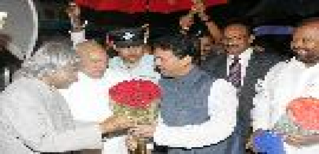 The President of India, Dr A P J Abdul Kalam being welcomed by the Governor of Andhra Pradesh, Shri Rameshwar Thakur at Visakhapatnam Airport in Andhra Pradesh on Feb 11, 2006