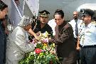 The President of India, Dr A P J Abdul Kalam being welcomed by the Governor of Goa, Shri S C Jamir at Naval Enclave Airport, Dabolim in Goa on Oct 18, 2005