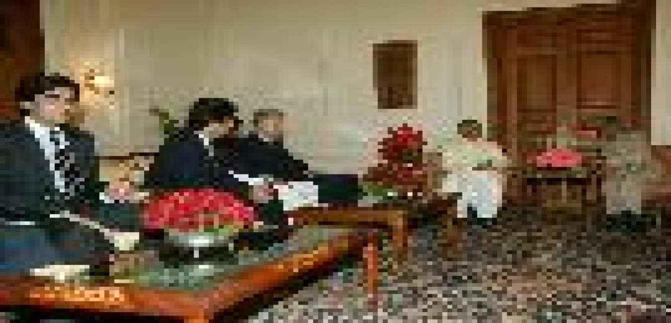 The Prime Minister of the Islamic Republic of Pakistan, HE Mr Shaukat Aziz and his wife Mrs Aziz calling on the President of India, Dr A P J Abdul Kalam at the Morning Room of Rashtrapati Bhavan in New Delhi on Nov 24, 2004