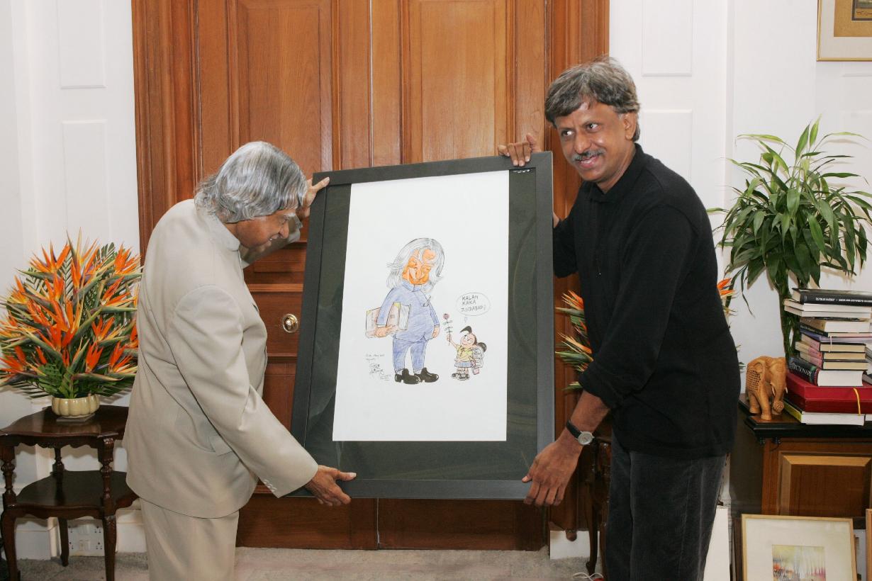 The President of India, Dr A P J Abdul Kalam interacting with Shri Sudhir Tailang Cartoonist at Rashtrapati Bhavan in New Delhi on June 20, 2007