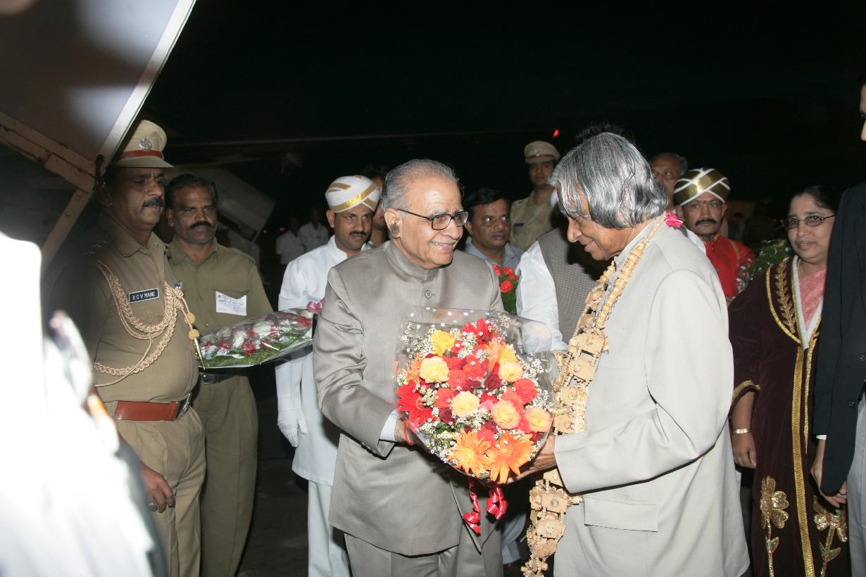 The President of India, Dr A P J Abdul Kalam being welcomed by the Governor of Karnataka, Shri T N Chaturvedi at Bangalore Airport in Karnataka on Aug 20, 2006