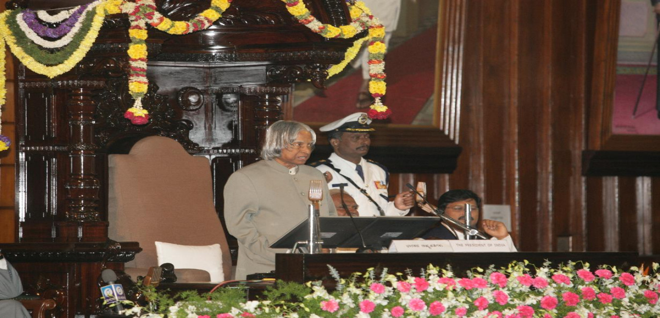 The President of India, Dr A P J Abdul Kalam addressing the Members of Karnataka Legislature on the occasion of 'Suvanrna Karnataka' at Bangalore in Karnataka on Nov 20, 2005