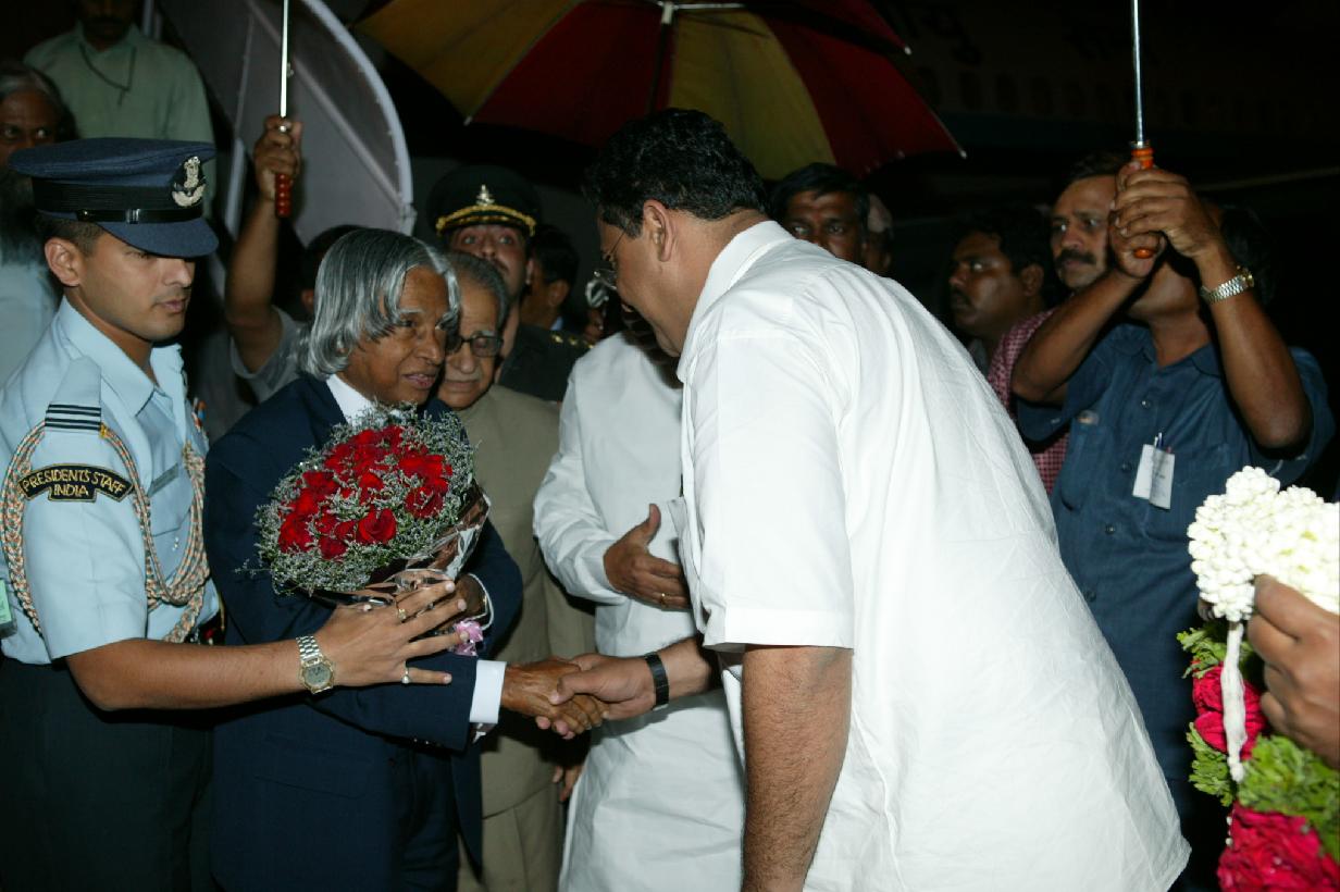 The President of India, Dr A P J Abdul Kalam being seen off by the Governor of Karnataka, Shri T N Chaturvedi at Bangalore Airport in Karnataka on Jan 16, 2004