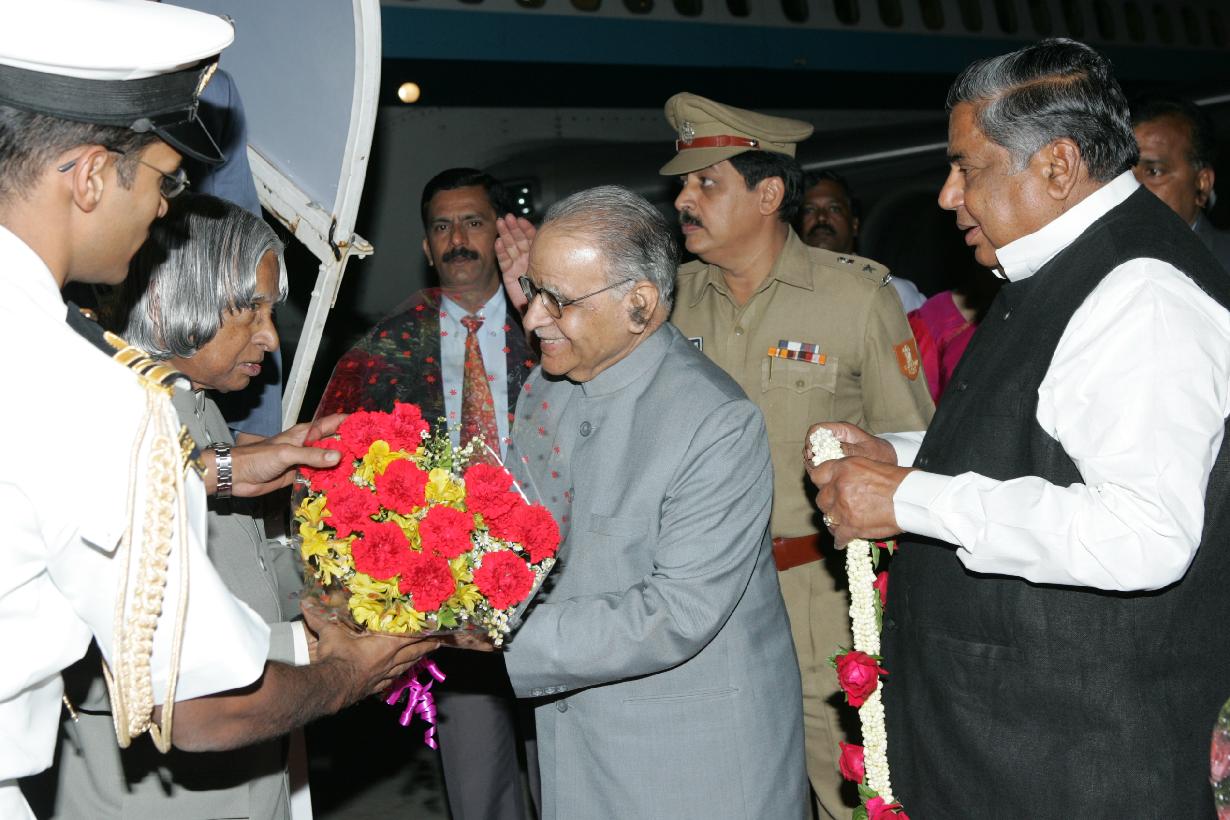 The President of India, Dr A P J Abdul Kalam being received by the Governor of Karnataka, Shri T N Chaturvedi at Bangalore Airport in Karnataka on Nov 20, 2005