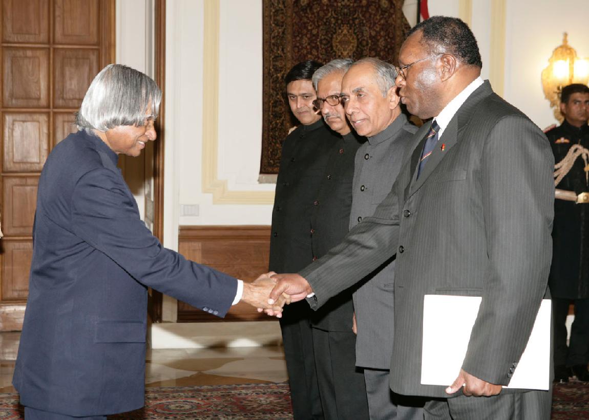 The High Commissioner-Designate of Papua New Guinea to India, HE Mr Tarcisius Adrian Eri presenting his credential to the President of India, Dr A P J Abdul Kalam at the Yellow Drawing Room of Rashtrapati Bhavan in New Delhi on Jan 18, 2007
