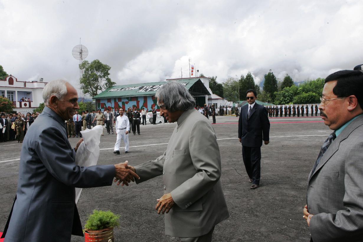 The President of India, Dr A P J Abdul Kalam being received by the Governor of Sikkim, Shri V Rama Rao at Gangtok (Libing Helipad) in Sikkim on Sep 22, 2005