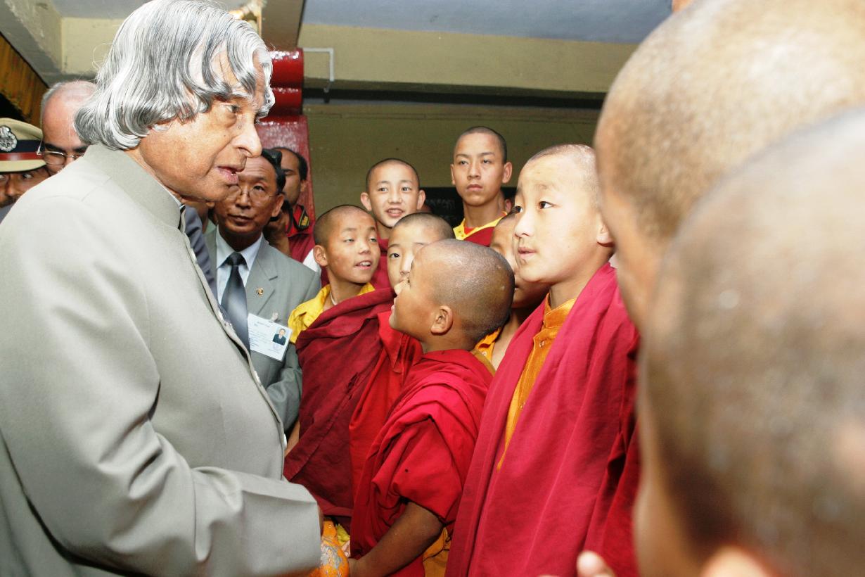 The President of India, Dr A P J Abdul Kalam meeting with the Students of Sir Tashi Namgyal Sr Secondary School (TNSSS) at Gangtok in Sikkim on Sep 22, 2005