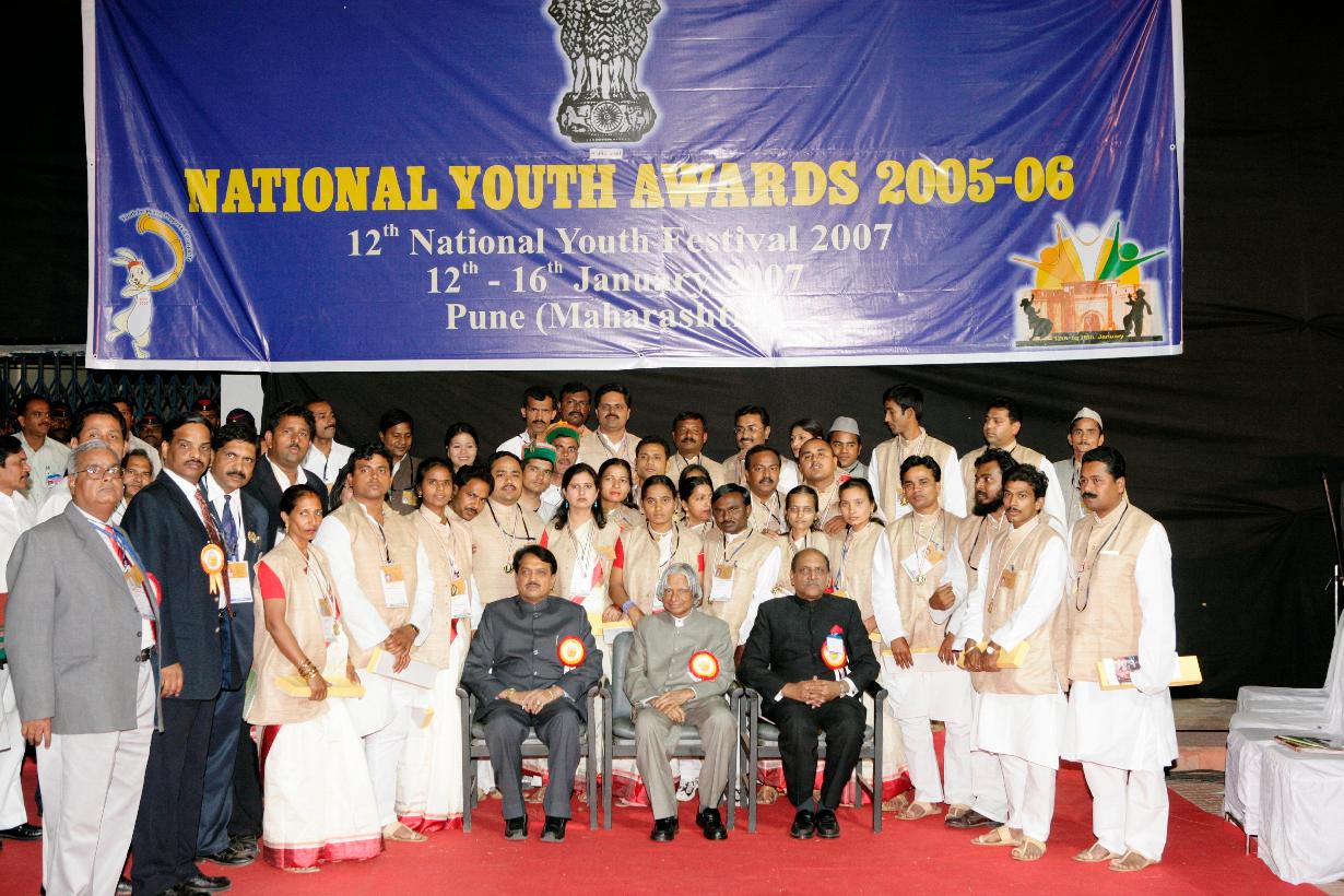 The President of India, Dr A P J Abdul Kalam presenting the National Youth Awards at Balewadi, Pune in Maharashtra on Jan 16, 2007