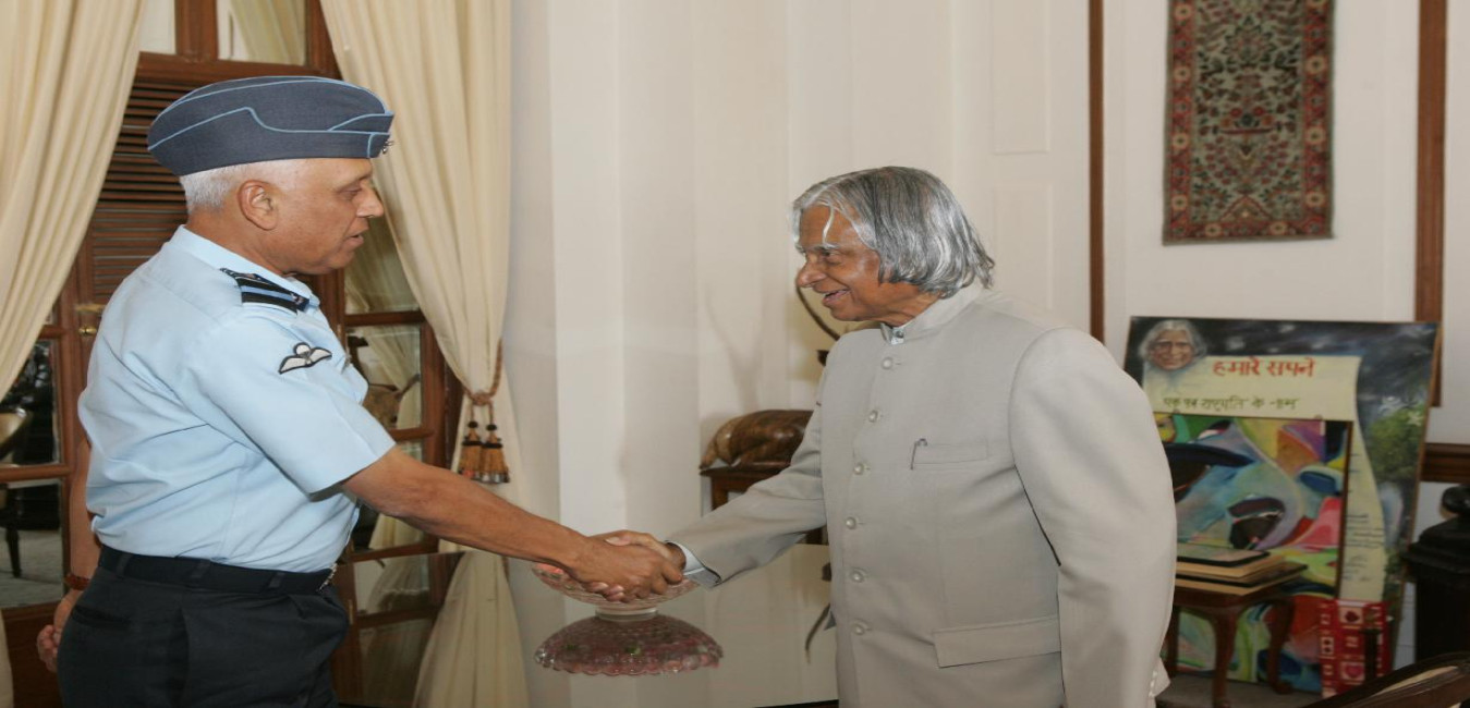 The President of India, Dr A P J Abdul Kalam at the Farewell Call by the Air Chief Marshal S P Tyagi, PVSM, AVSM, VM, ADC Chief of the Air Staff at Rashtrapati Bhavan in New Delhi on March 28, 2007