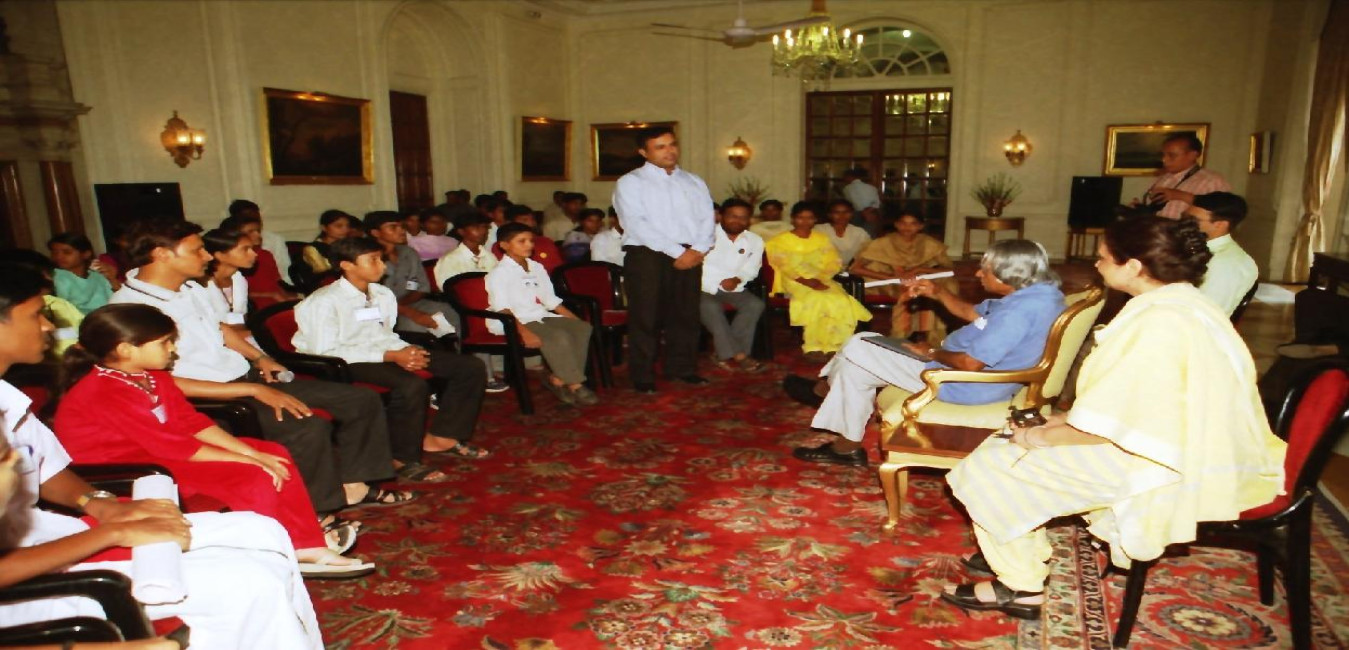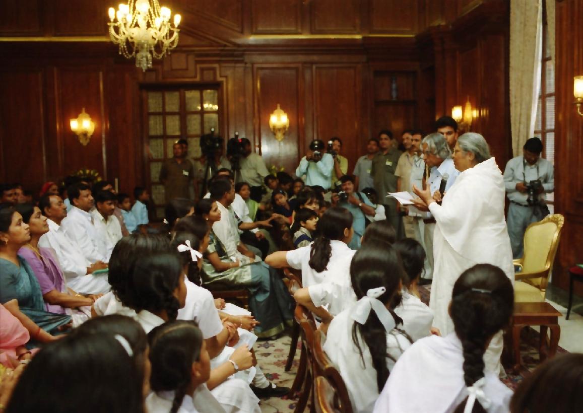The Children and Officials of Public Advocacy Initiatives for Rights and Values in India calling on the President of India, Dr A P J Abdul Kalam at the Yellow Drawing Room of Rashtrapati Bhavan in New Delhi on July 24, 2003