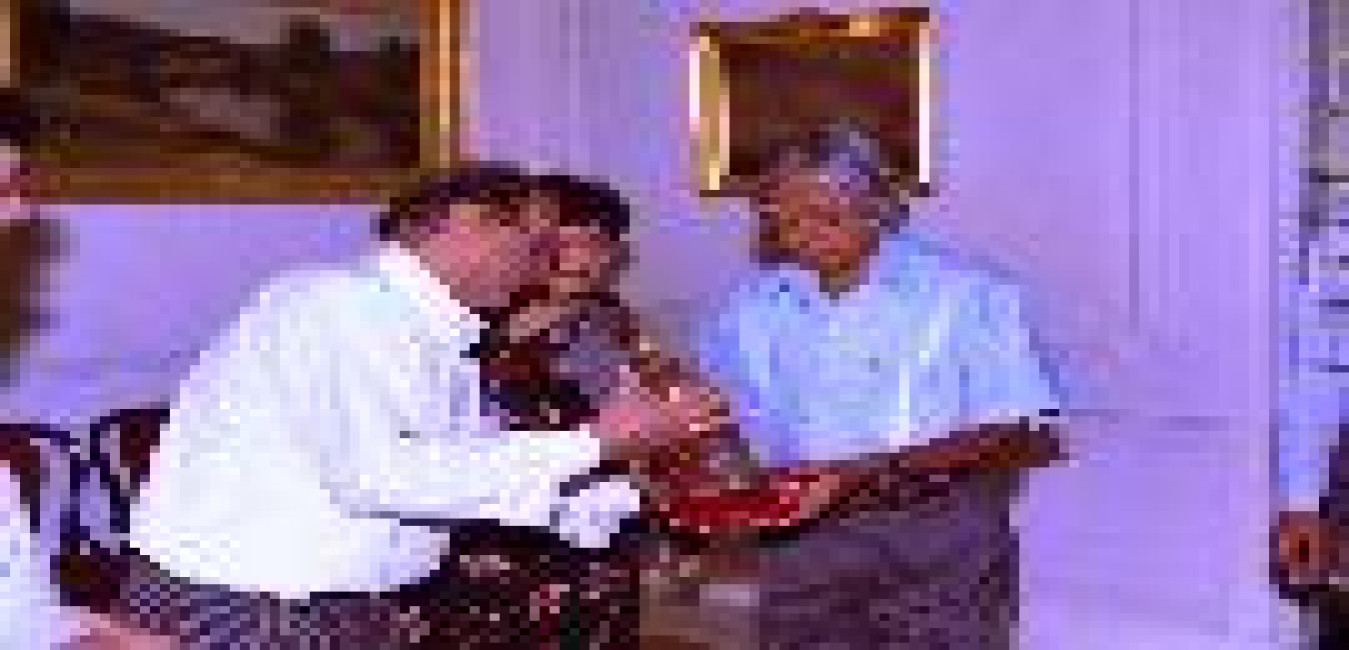 The Prime Minister of Lesotho, The Rt Hon Pankalitha Bethuel Mosisili and his wife Mosisili calling on the President of India, Dr A P J Abdul Kalam at the Morning Room of Rashtrapati Bhavan in New Delhi on Aug 06, 2003
