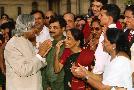 The President of India, Dr A P J Abdul Kalam receiving the Raksha Bandhan Greetings from Children and others at the Rashtrapati Bhavan in New Delhi on Aug 12, 2003