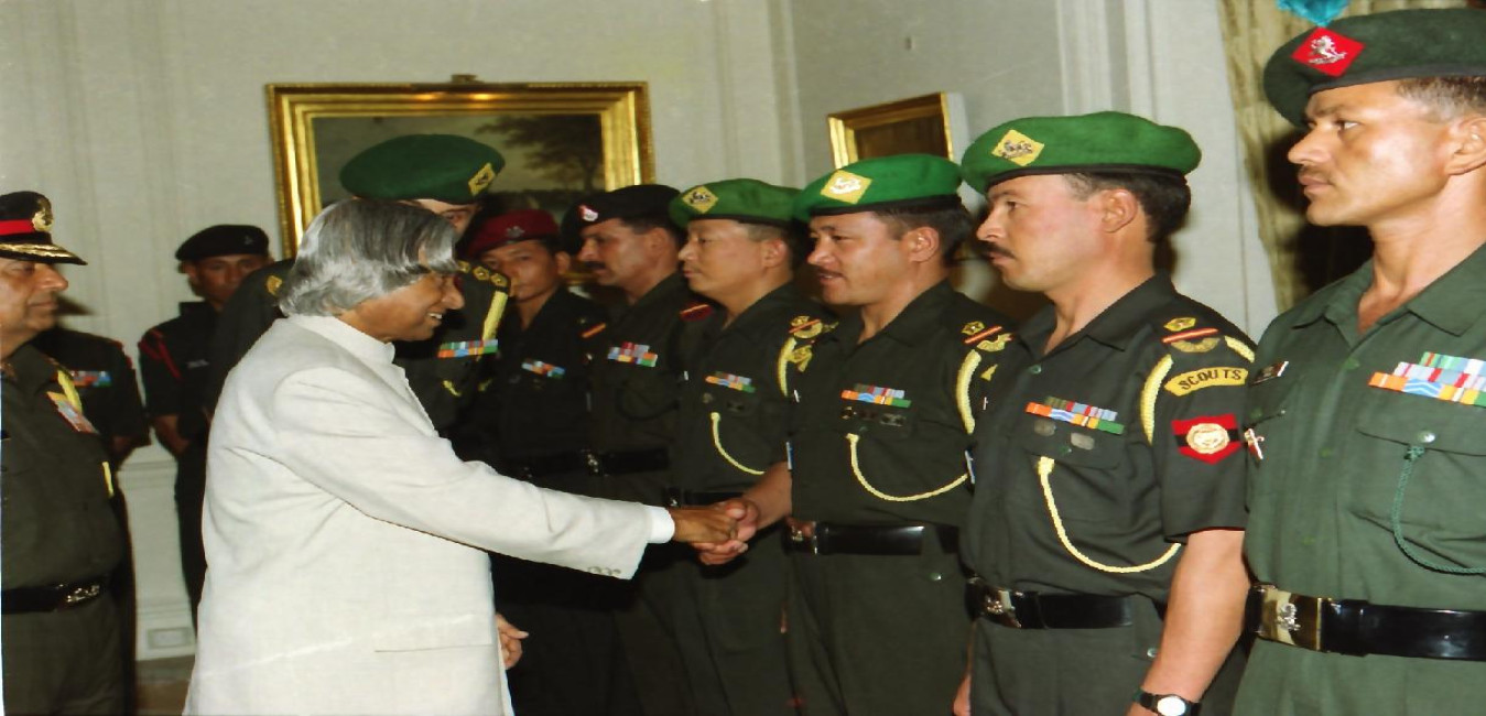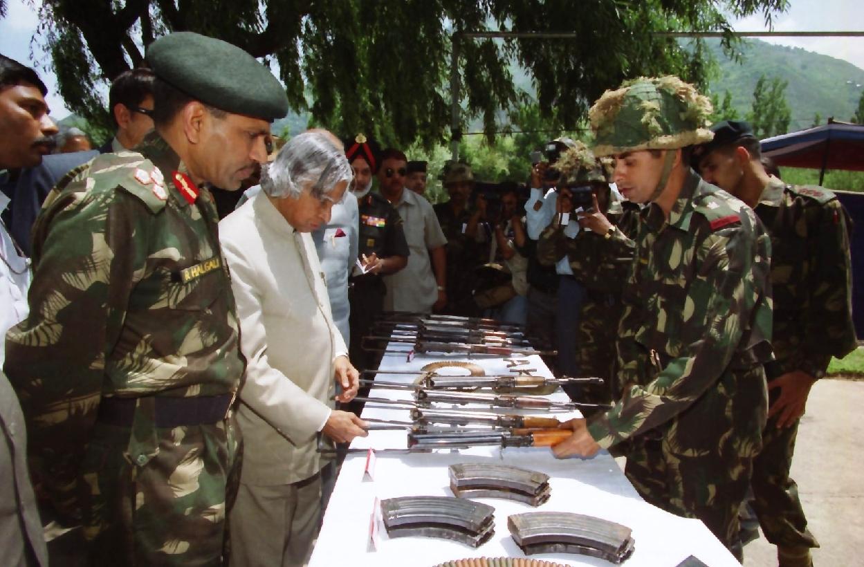 The President of India, Dr A P J Abdul Kalam visiting the Brigade HQ and meeting with the TPS at URI in Jammu and Kashmir on June 28, 2003