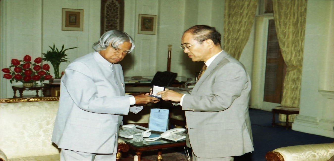 The President of India, Dr A P J Abdul Kalam visiting the Safi Mahal and Meeting with the HH Dr Syedna Md Burahnu at Mumbai in Maharashtra on July 06, 2003