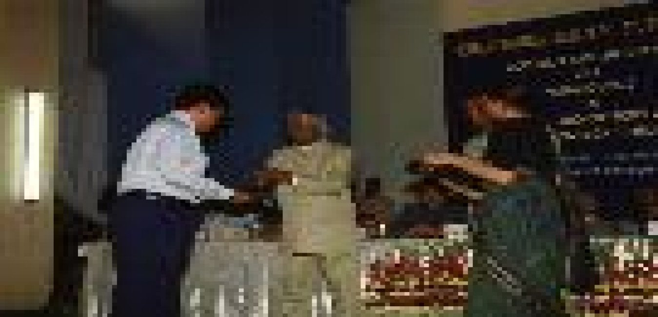 The High Commissioner-Designate of Namibia to India, HE Maj Gen Charles Dicson Ndaxu Phillip Namoloh presenting his credentials to the President of India, Dr A P J Abdul Kalam at the Ashok Hall of Rashtrapati Bhavan in New Delhi on April 16, 2003