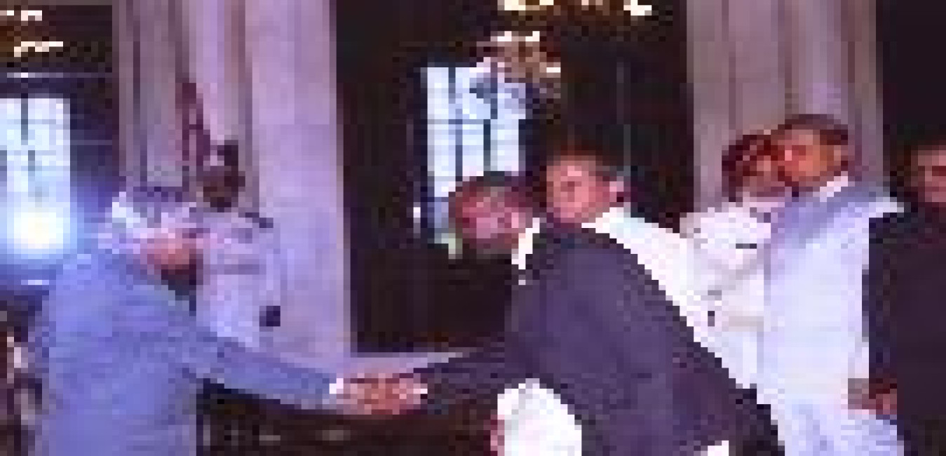 The President of India, Dr A P J Abdul Kalam at the Banquet Hosted in Honour of the Distinguished Guests President of the Republic of Zambia, His Excellency Mr Levy P Mwanawasa and his wife Mrs Maureen Mwanawasa at the Banquet Hall of Rashtrapati Bhavan in New Delhi on April 21, 2003