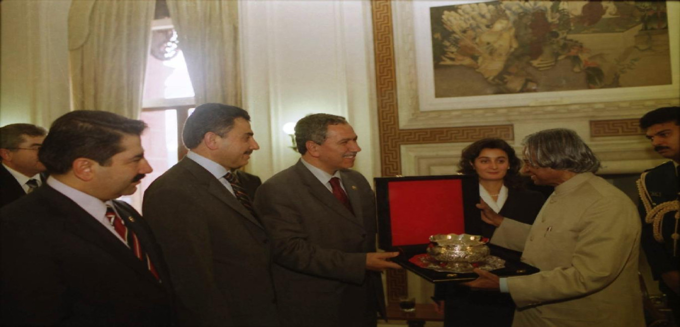 The Parliamentary Delegation from Turkey led by the Speaker of the Turkish Grand National Assembly, HE Mr Bluent Arinc with others calling on the President of India, Dr A P J Abdul Kalam at the Morning Room of Rashtrapati Bhavan in New Delhi on Dec 17, 2002