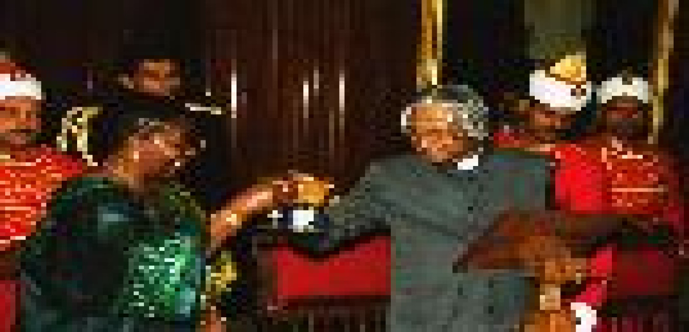 The President of India, Dr A P J Abdul Kalam at the Banquet Hosted in Honour of the President of the United Republic of Tanzania, HE Mr Benjamin William Mkapa and his wife Mrs Anna Benjamin Mkapa at the Banquet Hall of Rashtrapati Bhavan in New Delhi on Dec 16, 2002