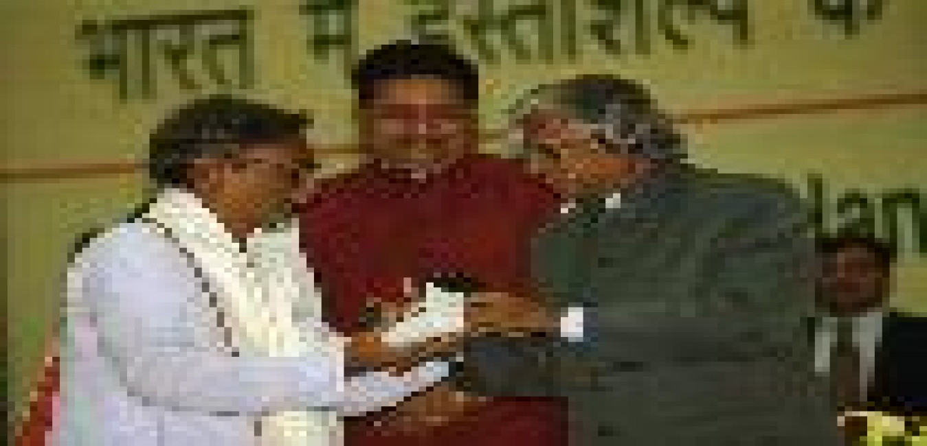 The President of India, Dr A P J Abdul Kalam presenting the Swadesabhimani Puraskar 2002 to Shri V K Madhavan Kutty at Kanakakunnu in Kerala on Nov 18, 2002