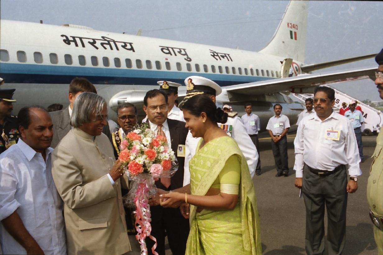 The President of India, Dr A P J Abdul Kalam before departure from Thiruvananthapuram Airport in Kerala on Nov 18, 2002