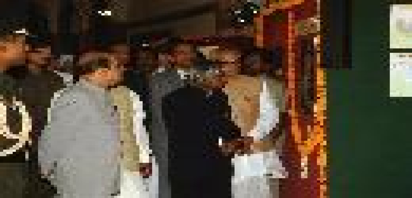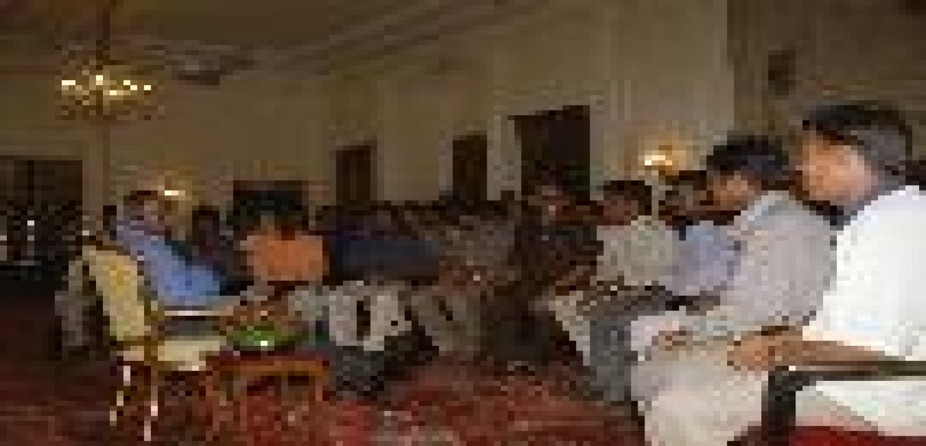 The President of India, Dr A P J Abdul Kalam with Pt Shivkumar Sharma, Smt Shivkumar Sharma, Mr David Davidar and others to present a Copy of the Book ''A Journey with Hundred Strings'' at Rashtrapati Bhavan in New Delhi on Sep 26, 2002