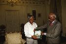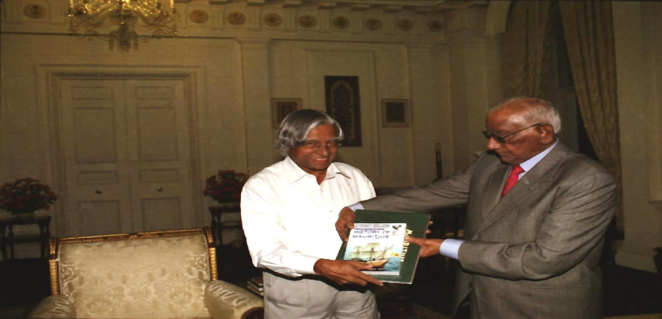 The President of India, Dr A P J Abdul Kalam with the Former Vice President of Mauritius, Mr A V Chettiar at Rashtrapati Bhavan in New Delhi on Sep 27, 2002
