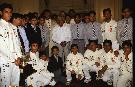 The President of India, Dr A P J Abdul Kalam posing for a Group photograph with the Jat Regimental Centre Brass Band at the East Lawn of Rashtrapati Bhavan in New Delhi on Sep 28, 2002