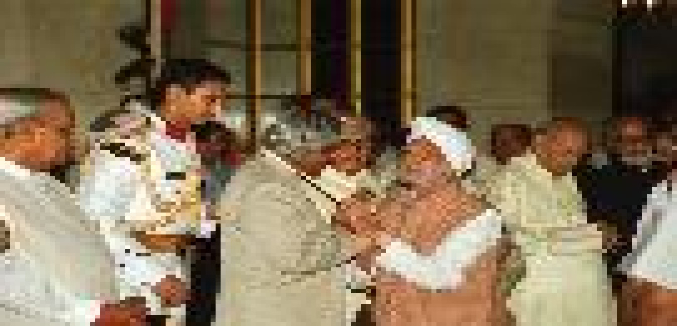 The President of India, Dr A P J Abdul Kalam at the Dinner Hosted for the Council of Ministers at the Banquet Hall of Rashtrapati Bhavan in New Delhi on Aug 10, 2002