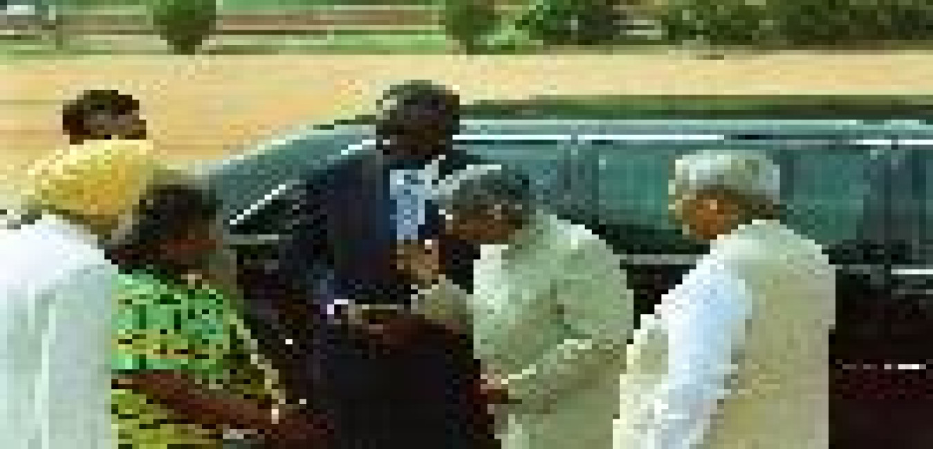 The President of India, Dr A P J Abdul Kalam at the Ceremonial Reception of the President of the Republic of Ghana, His Excellency Mr John Agyekum Kufuor and his wife Mrs Theresa Kufuor at the Forecourt of Rashtrapati Bhavan in New Delhi on Aug 05, 2002
