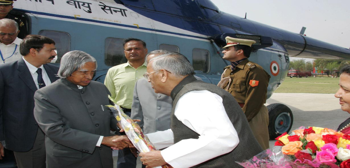 The President of India, Dr A P J Abdul Kalam arriving at CISF Complex Helipad, Ghaziabad in Uttar Pradesh on March 10, 2007