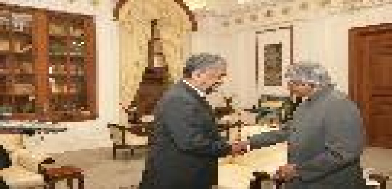 The President of India, Dr A P J Abdul Kalam interacting with the Former President of Republic of Mauritius, HE Mr Cassam Uteem at the Morning Room of Rashtrapati Bhavan in New Delhi on Dec 13, 2006