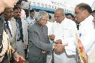 The President of India, Dr A P J Abdul Kalam being received by the Governor of Andhra Pradesh, Shri Rameshwar Thakur at Tirupati Airport in Andhra Pradesh on Dec 11, 2006