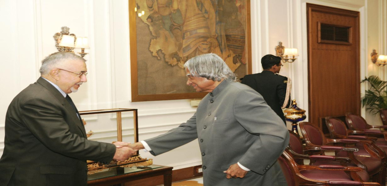 The King of Jordan, His Majesty King Abdullah II Bin Al-Hussein and Her Majesty Queen Rania Al Abdullah calling on the President of India, Dr A P J Abdul Kalam at the North Drawing Room of Rashtrapati Bhavan in New Delhi on Dec 01, 2006