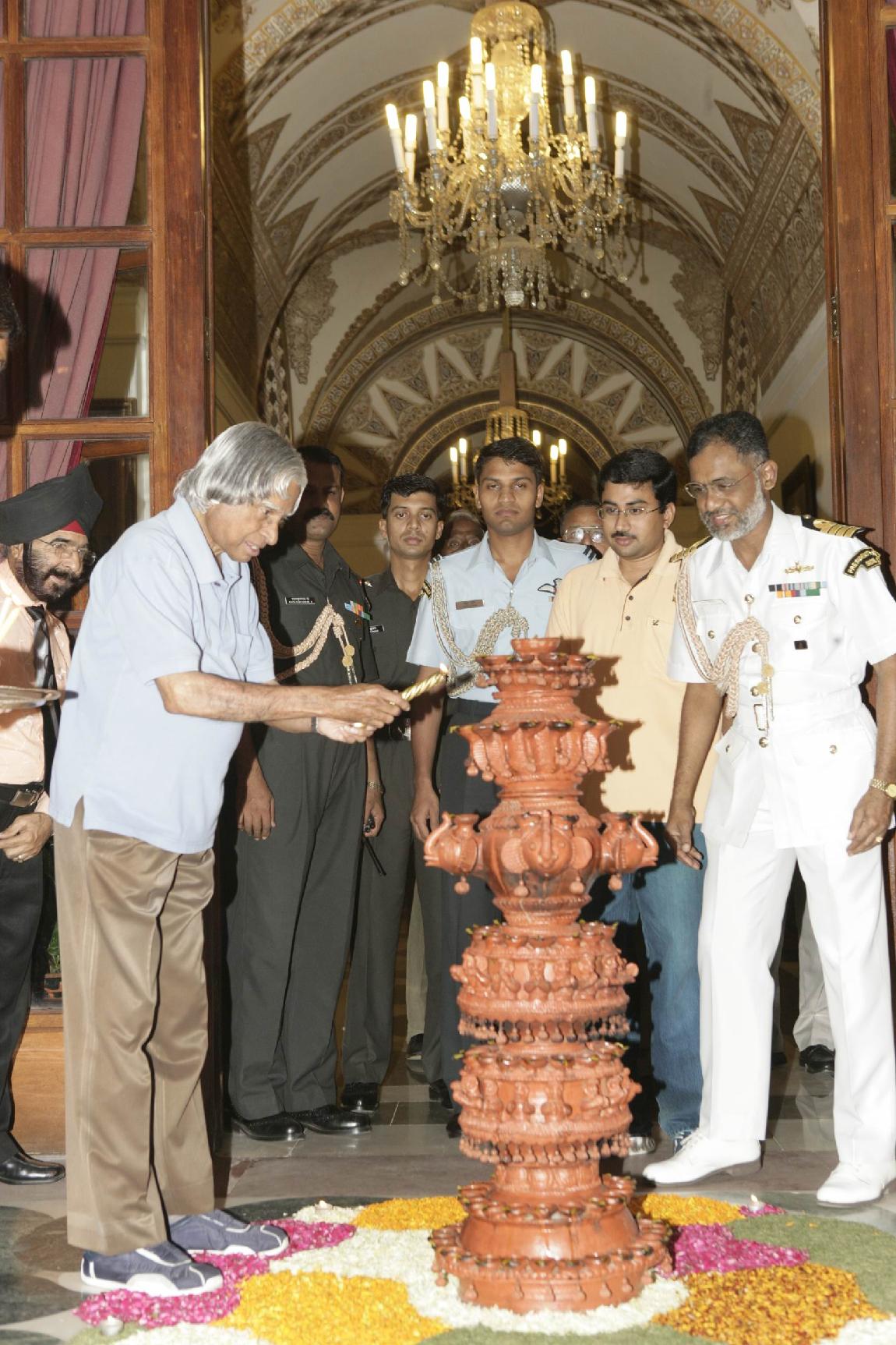 The President of India, Dr A P J Abdul Kalam lighting the Lamp on Diwali at Rashtrapati Bhavan in New Delhi on Oct 21, 2006