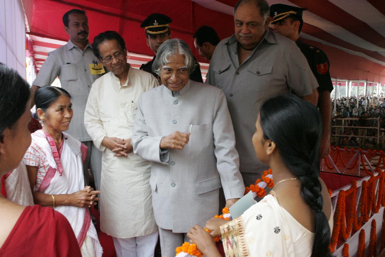 The President of India, Dr A P J Abdul Kalam during visit to Production Centres of Traditional Assam Silk, Handloom Weaving and Cooperative Marketing Centers at Village Sualkuchi in Assam on Oct 17, 2006